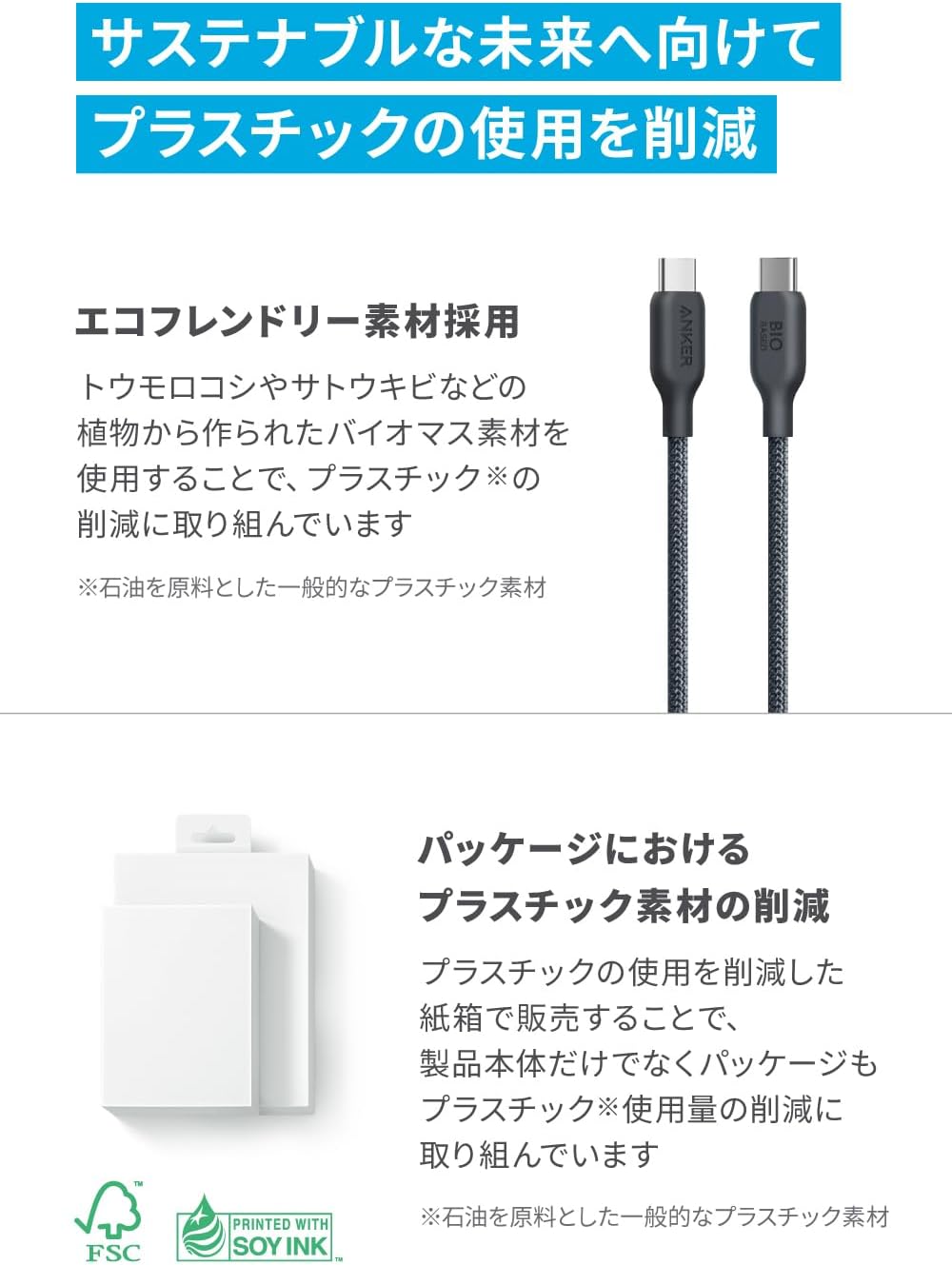 - Adopts eco-friendly materials: The exterior of the cable is made of plant derived materials to make it environmentally friendly. Only the surface material of the cable is biomass material