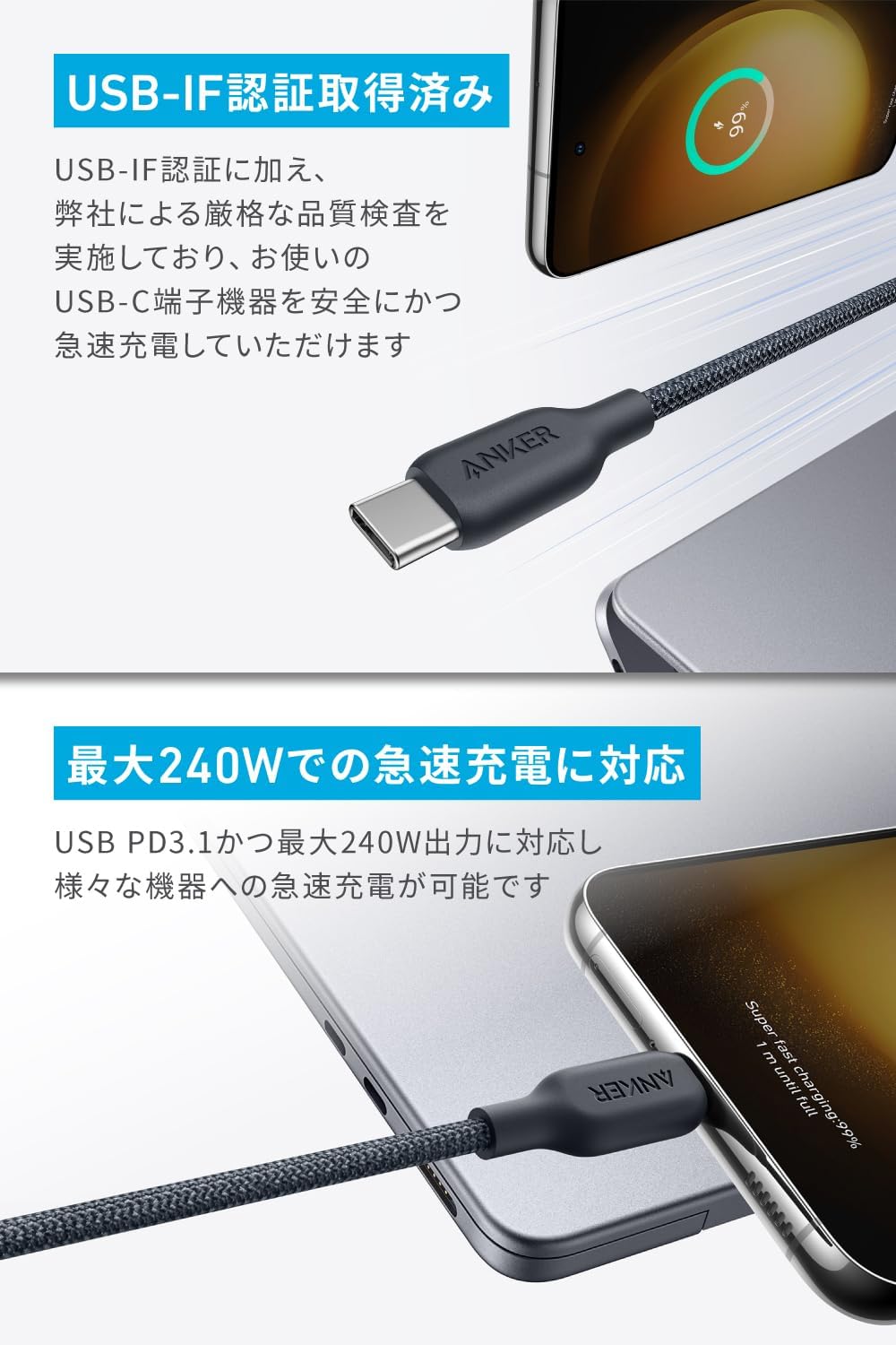 Anker 543 USB-C to USB-C Cable (240W, 6FT Bio – Nylon 2-Pack) 1.8m Black